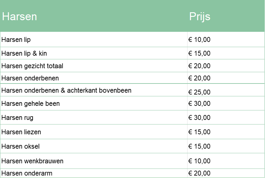 Voor het verwijderen van ongewenste beharing op armen, benen, oksels en bikinilijn wordt de veilige en effectieve Clean & Easy hars gebruikt. Met harsen worden de haren met de wortel uit het haarzakje verwijderd. De nieuwe groeicyclus van een haartje duurt ongeveer 6 weken. Dit in tegenstelling tot scheren, waarbij de haartjes binnen een paar dagen weer terug zijn.